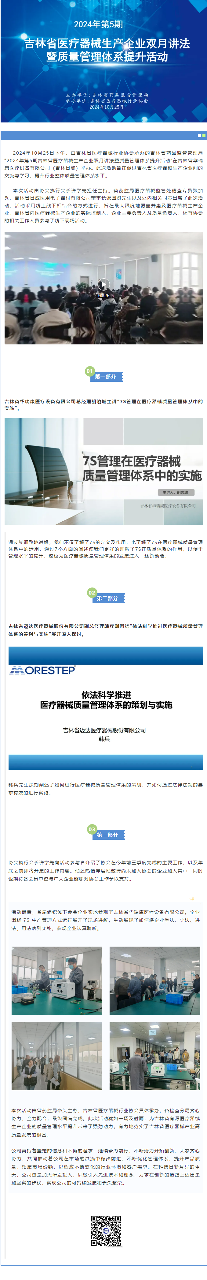 2024年第5期吉林省医疗器械生产企业双月讲法暨质量管理体系提升活动在我司顺利举行